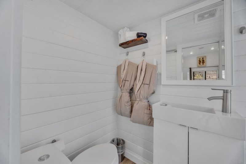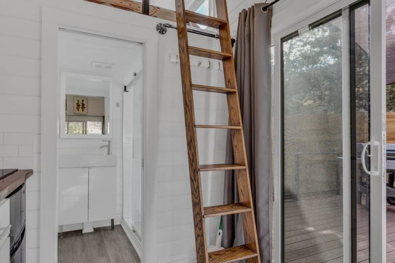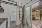 This unit has essential cooking items supplied for you. The added feature of this tiny home is the private hot tub off your private deck. Remember to take advantage of pontoon boat rentals, SUP, and kayaking boat rentals.