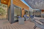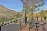 Amenities at Lake Simtustus Resort include a partial kitchen, deck with furniture and propane BBQ, firepit, swim areas, boat launch/moorage, A/C, motorized boat rentals, kayak rentals, paddle board rentals, pickleball court, a 5-hole putting green and sauna with lake views.