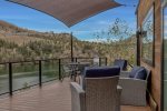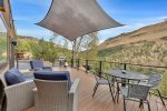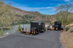 Amenities at Lake Simtustus Resort include a partial kitchen, deck with furniture and propane BBQ, firepit, swim areas, boat launch/moorage, A/C, motorized boat rentals, kayak rentals, paddle board rentals, pickleball court,a 5-hole putting green and sauna with lake views.