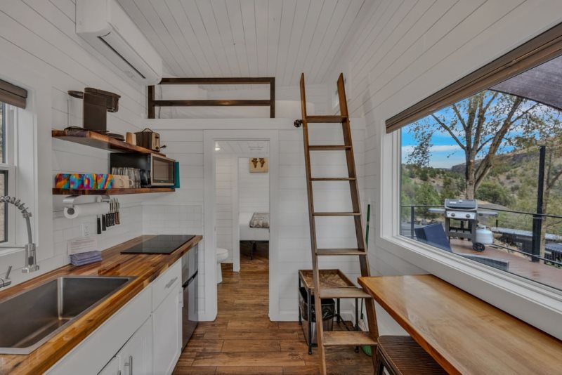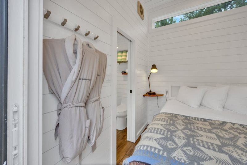 This beautiful tiny home also has a private hot tub for your use. After a day on the lake, you can return to your private deck and grill up your food on the private BBQ. Remember pontoon boat rentals, SUP rentals, and kayak rentals.