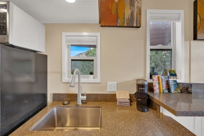 All of our Tiny Homes are Amazing! Crown Point is perfect for just two people to relax and enjoy the sounds and sights of Lake Simtustus. If you need a little more room, we have our Eagles Landing Tiny Homes, which can sleep up to 4 guests, and our Juniper Hill Tiny Homes can sleep 3-6 people, depending on the Tiny Home. Come and enjoy the Lake Life!