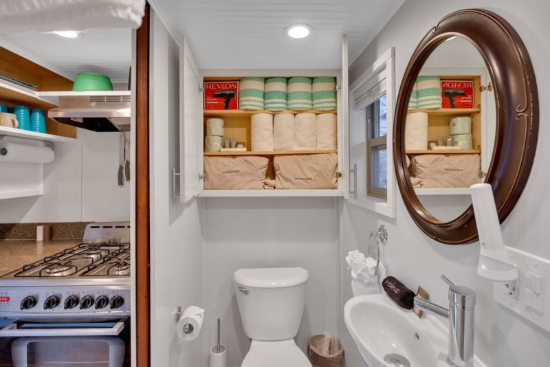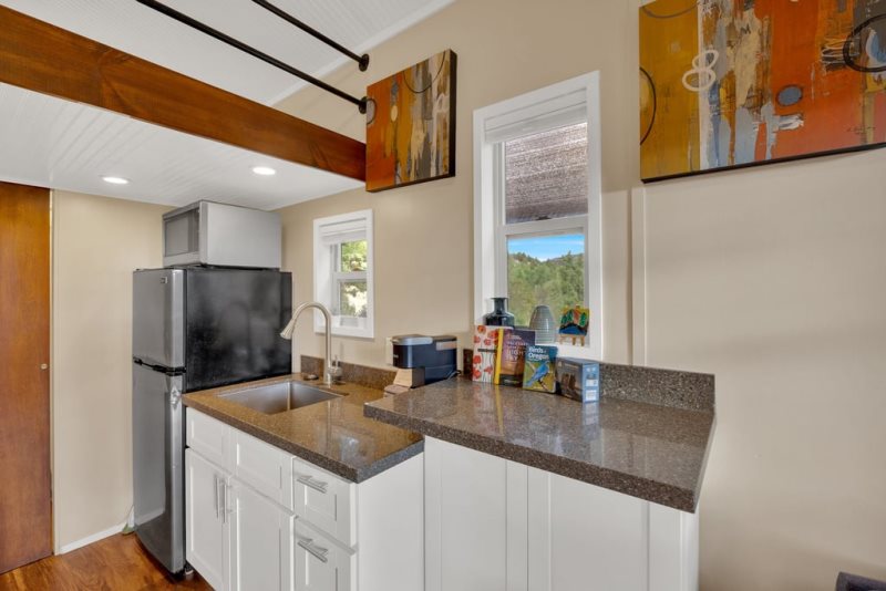 This beautiful, tiny home also has a private hot tub for your use. After a day on the lake, you can return to your private deck and grill up your food on the private BBQ. Remember pontoon boat rentals, SUP rentals, and kayak rentals.
