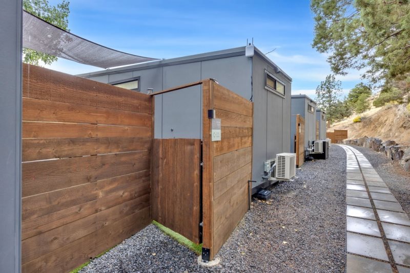 These spacious open-concept units feature a couch and a queen-sized Murphy bed with a plush mattress, high-end linens, and wool Pendleton blankets for those crisp, high desert nights under the stars- experience off-the-grid stargazing from your bed with a 4X4 skylight or from your hot tub in a private yard. Sit out on your deck at night and listen to the sounds of the lake and enjoy stargazing at it's best!