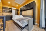 These spacious open-concept units feature a couch and a queen-sized Murphy bed with a plush mattress, high-end linens, and wool Pendleton blankets for those crisp, high desert nights under the stars- experience off-the-grid stargazing from your bed with a 4X4 skylight or from your hot tub in a private yard.